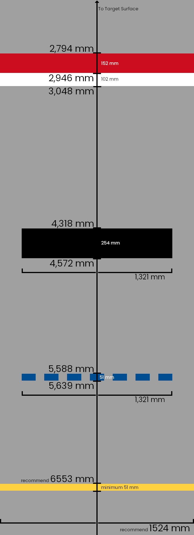 - The target edge of the line is 170” (4,318 mm) from the surface of the target
